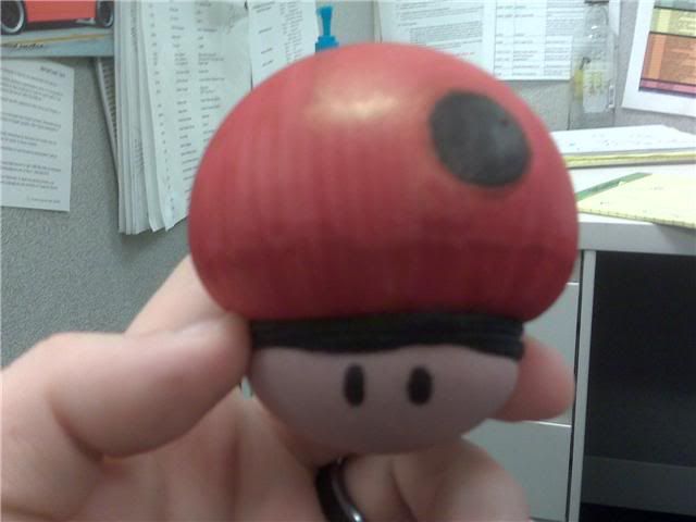 So, I get bored at work. And sometimes I make things. This is a thing I made, with a black sharpie, a red sharpie, a REALLY cheap knockoff stressball, and a spare hair tie. Sure, it ain't perfect, but it got a lol out of me. Now only if that stuff worked for real, and I could go all stompin' around at work.